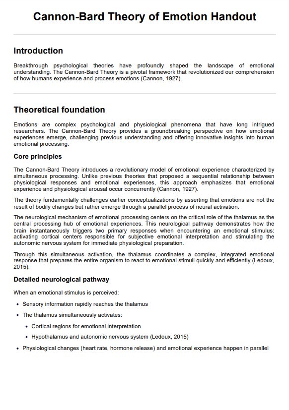 Cannon-Bard Theory of Emotion HandoutAI Template IconToolbar IconShare Icon