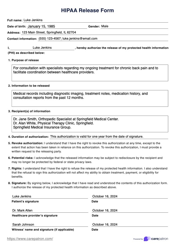 تُستخدم نماذج إصدار HIPAA كلما دعت الحاجة إلى مشاركة المعلومات الطبية السرية للمريض مع كيان خارجي. ويشمل ذلك عندما يرغب المرضى في الوصول إلى سجلاتهم أو عندما يشارك مقدم الرعاية الصحية المعلومات مع منظمة أخرى، مثل شركة التأمين أو المحامي.