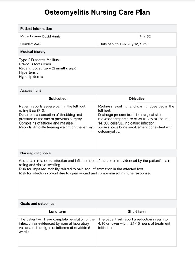 استخدم نموذج خطة الرعاية التمريضية لالتهاب العظم والنخاع لتخطيط وتقديم رعاية فعالة تركز على المريض.