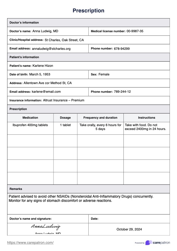 قم بالوصول إلى قالب وصفة طبية مجاني لسهولة الوصف. قم بتخصيص القالب وتنزيله كملف PDF لممارستك الطبية.
