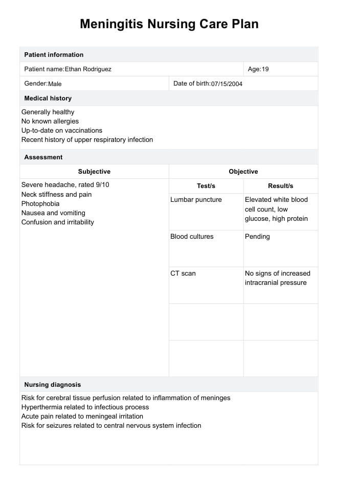 脑膜炎护理计划 Template