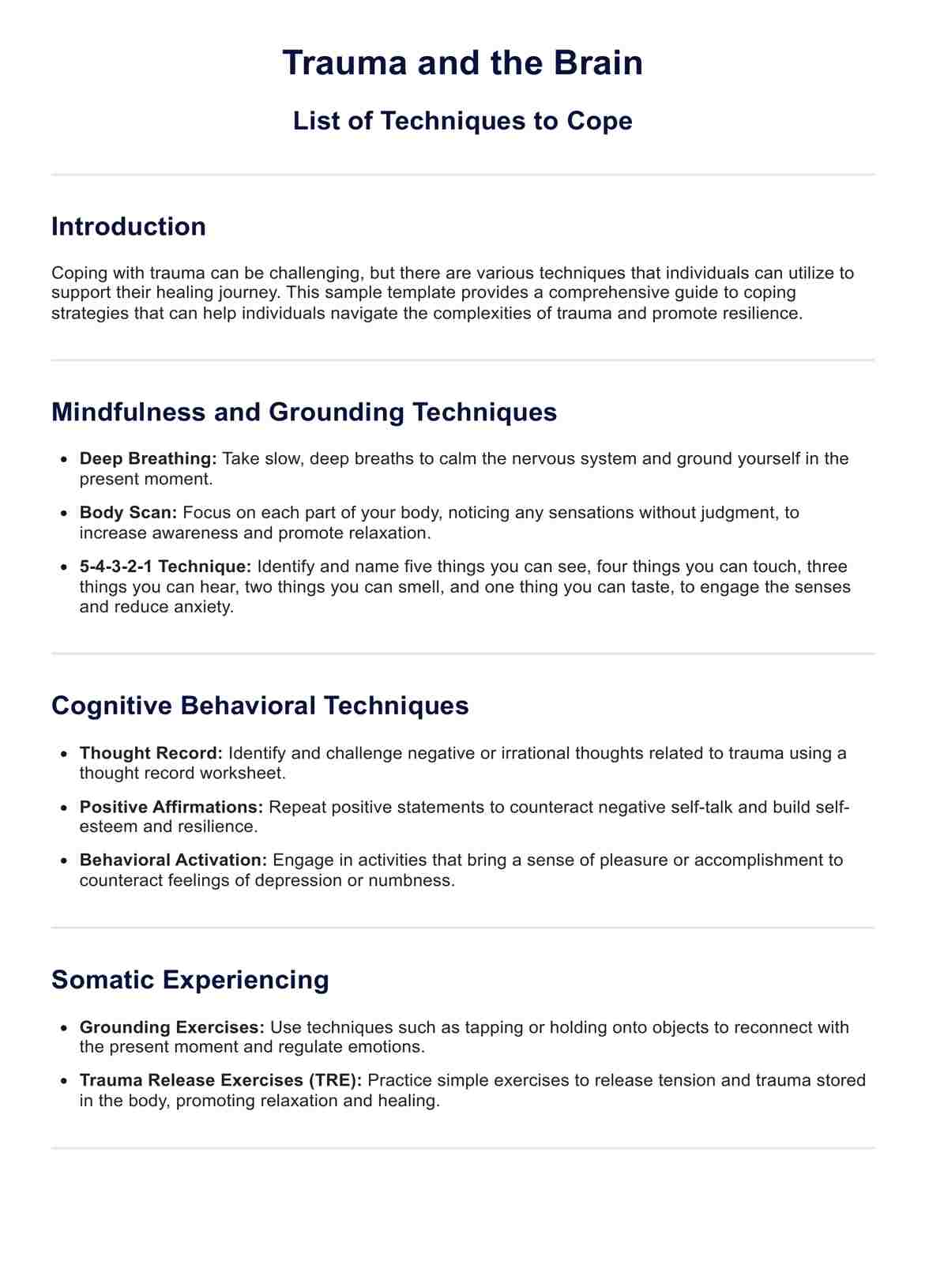 Trauma und Gehirn: Liste der Techniken zur Bewältigung Template