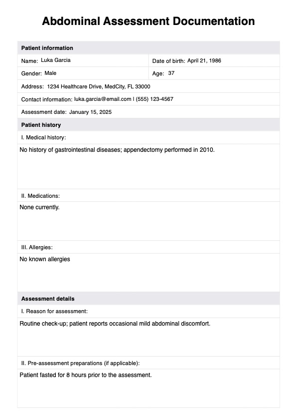 Formulario de evaluación abdominal Template