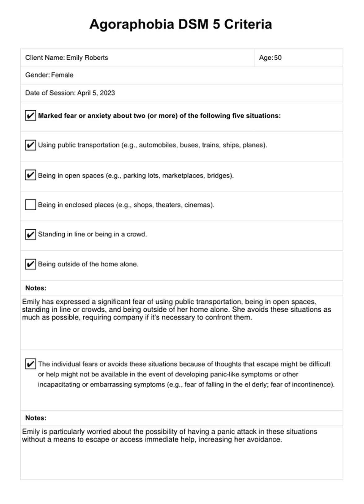Agorafobia criterios DSM 5 (manual diagnóstico y estadístico de trastornos mentales) Template