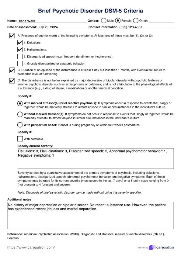 Criterios del DSM-5 para el trastorno psicótico breve Template