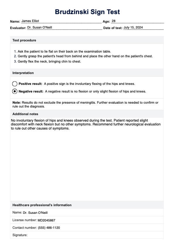 Explore la prueba del signo de Brudzinski para el diagnóstico de la meningitis, incluidos los pasos de la prueba, la interpretación y las opciones de tratamiento. Puede descargarlo gratuitamente en PDF.