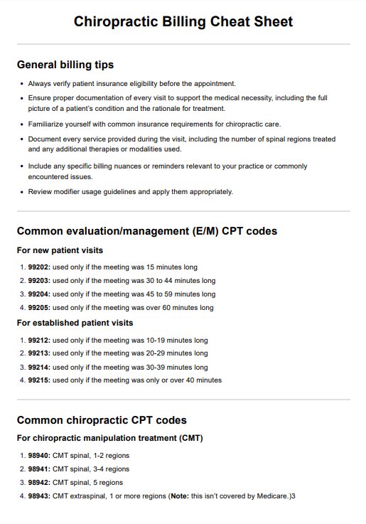 Hoja de referencia sobre facturación quiropráctica Template