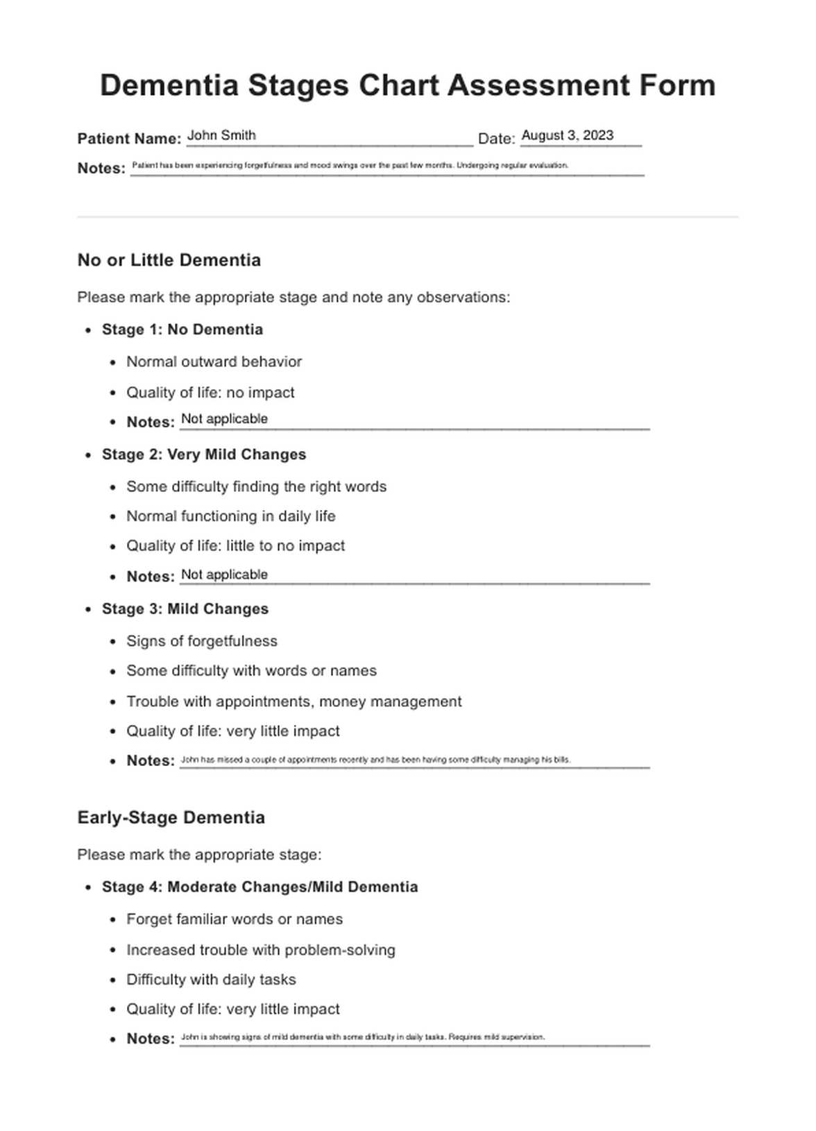 Explore el cuadro de estadios de la demencia con nuestra plantilla. Adapte los planes de cuidados, mejore la comunicación y comprenda los síntomas.