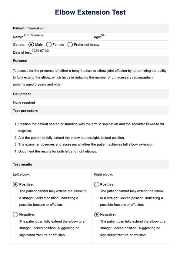 Descubra la prueba de extensión del codo para diagnosticar fracturas y derrames articulares. Conozca su finalidad, procedimiento y ventajas utilizando nuestra completa plantilla.
