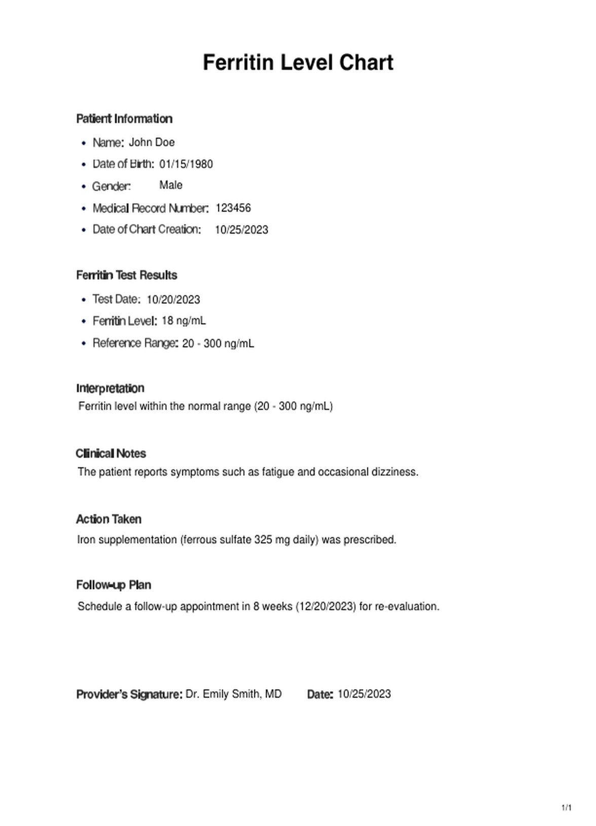 Controle eficazmente el estado del hierro con nuestra Tabla de niveles de ferritina�? una valiosa herramienta para los profesionales de la salud.