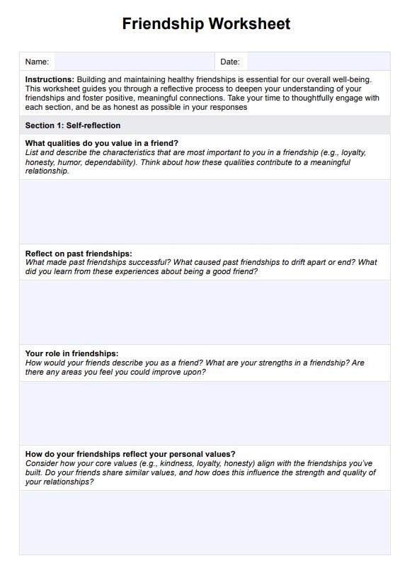 Explore nuestra Hoja de ejercicios sobre la amistad para tomar conciencia de sí mismo, mejorar la comunicación y construir relaciones más sólidas y positivas. ¡Descárguela gratis!