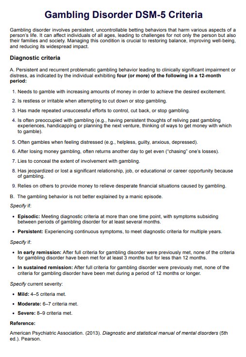 Gambling Disorder DSM-5 CriteriaAI Template IconToolbar IconShare Icon