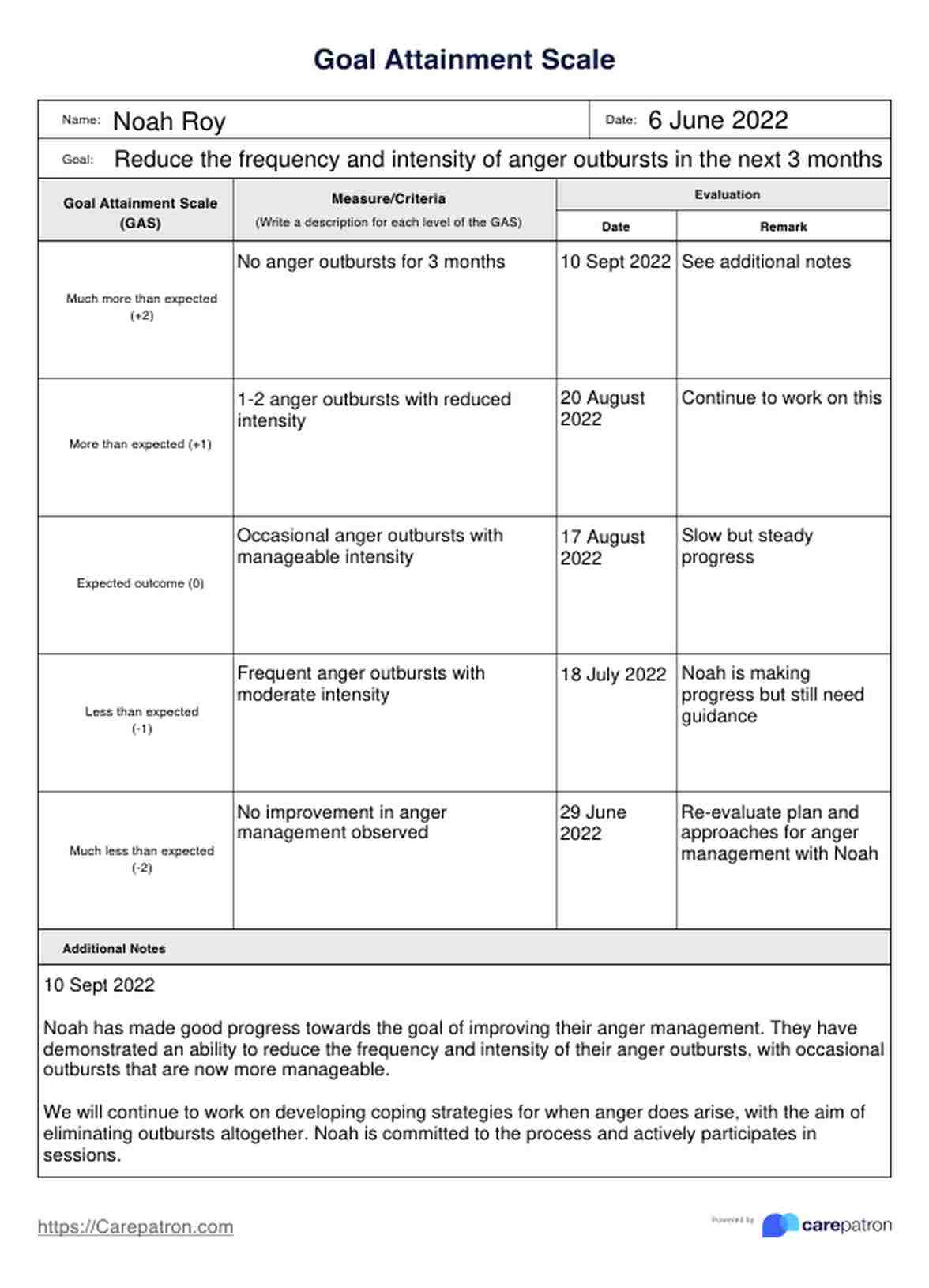 Puede administrar la GAS de varias formas, como mediante entrevistas, observación o medidas informadas por el médico. Usted y su paciente deben trabajar juntos para establecer objetivos específicos, y cada objetivo debe calificarse en función del progreso del paciente.