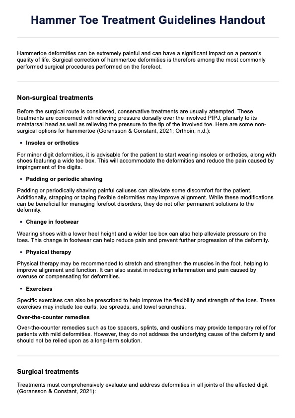 Aprenda a tratar el dedo en martillo y descargue el PDF gratuito de Carepatron para obtener consejos y sugerencias de expertos sobre el tratamiento de esta afección.