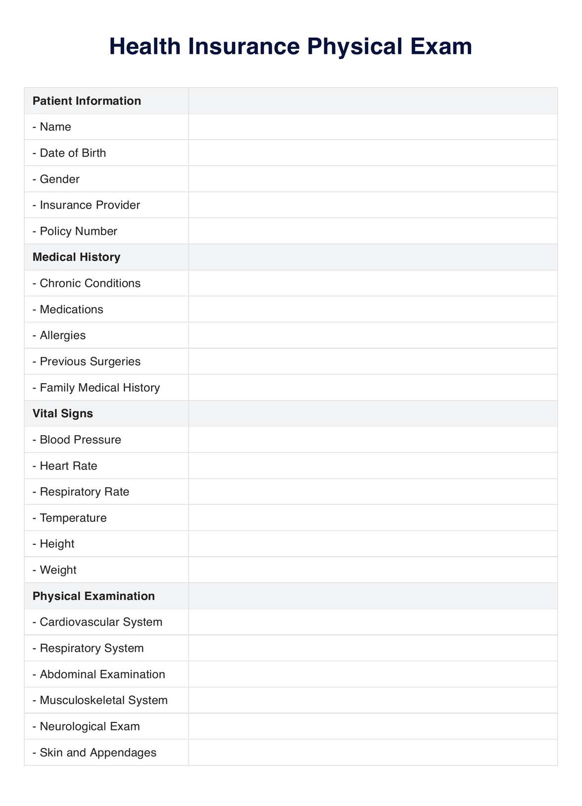 Examen físico para seguro médico Template
