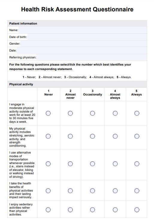 Descubra con Carepatron la plantilla definitiva para el examen físico del seguro médico. Agilice su consultorio con nuestra aplicación integral. Puede descargarlo gratuitamente en PDF.