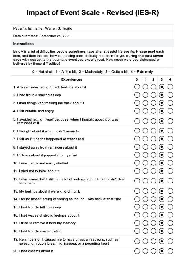Utilice la Escala de impacto de los acontecimientos - revisada (IES-R) para evaluar los síntomas del trastorno de estrés postraumático en pacientes.