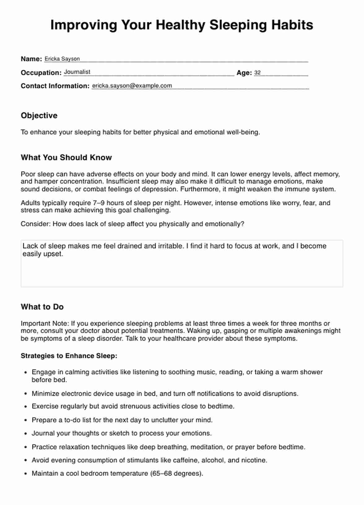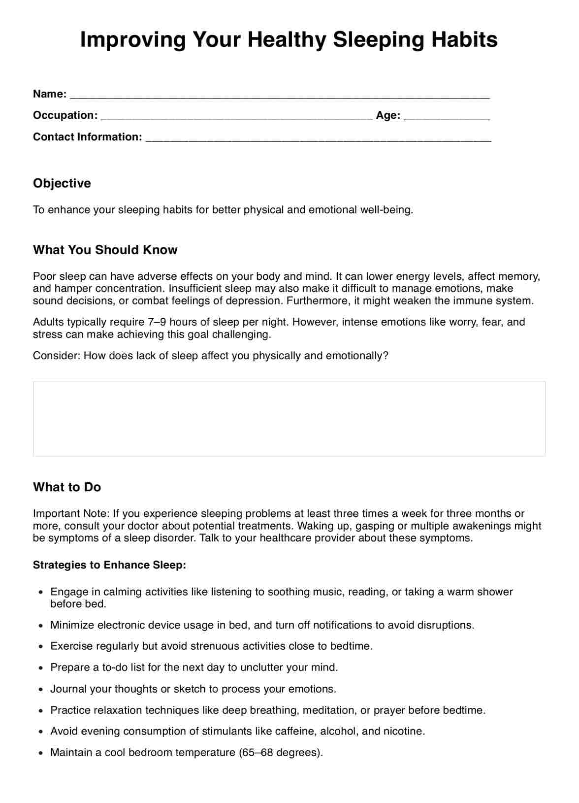 Hoja de ejercicios de cómo mejorar sus hábitos saludables de sueño Template