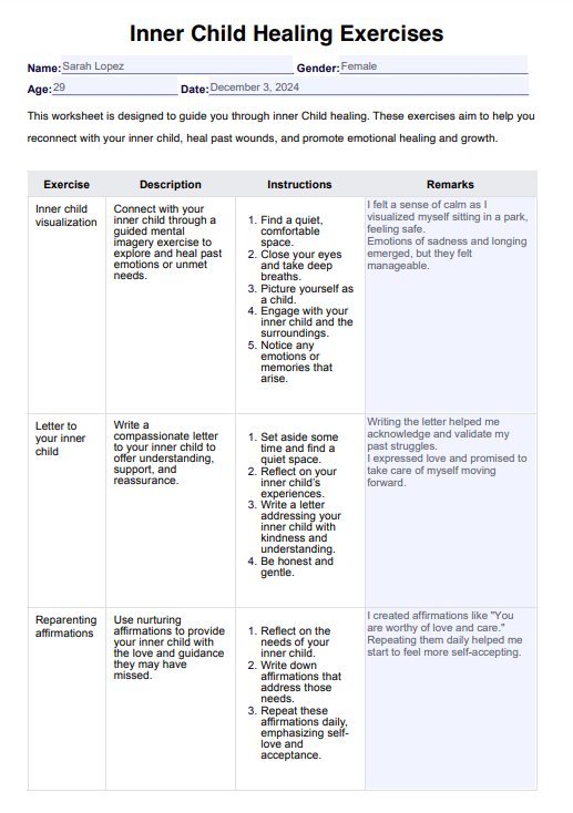 Ejercicios de curación del niño interior Template