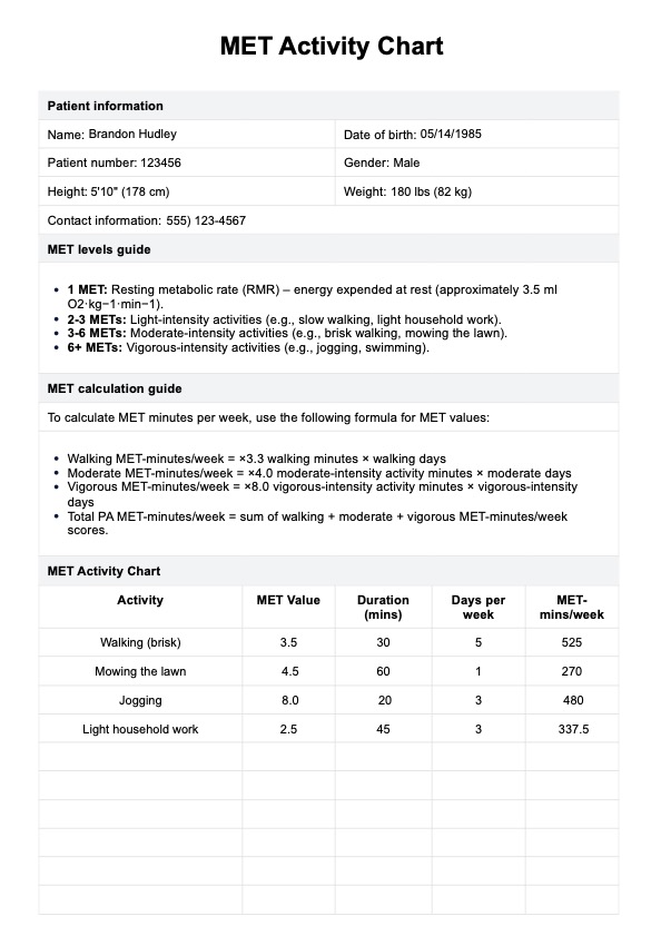 MET se calcula basándose en el coste energético de las actividades, siendo 1 MET la tasa metabólica en reposo de referencia. El valor MET de una actividad indica cuánta más energía se gasta en comparación con los equivalentes metabólicos en reposo.