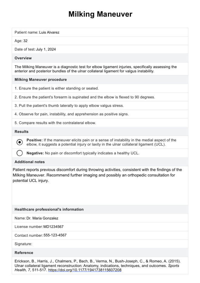 Test de maniobra de ordeño Template