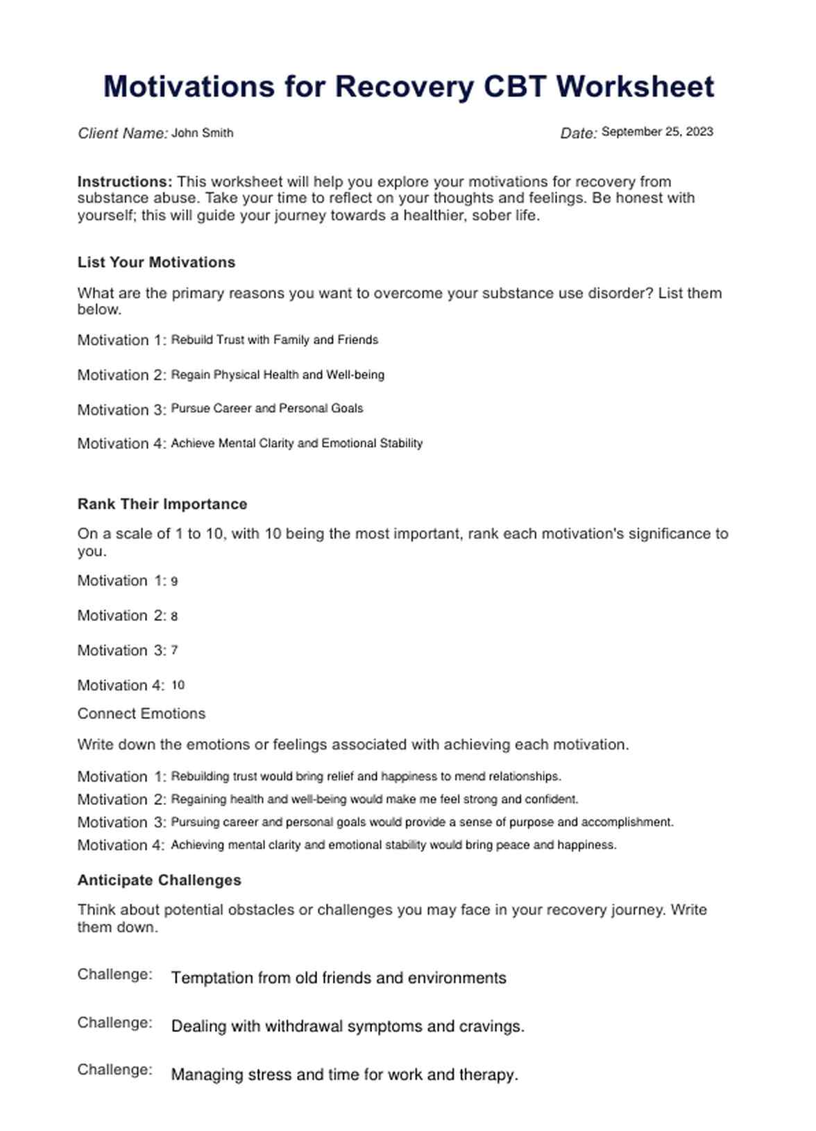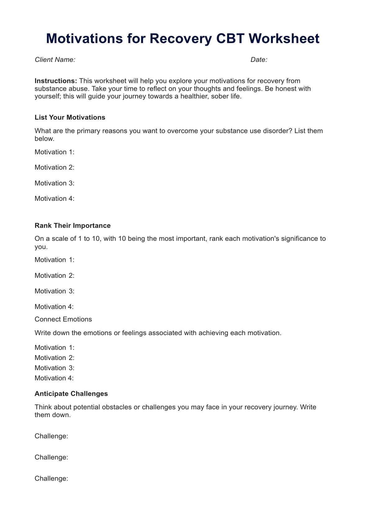 Hoja de ejercicios de motivaciones para la recuperación Template