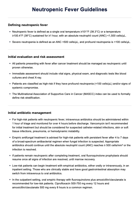 Descubra las completas Guías para la fiebre neutropénica que cubren las causas, los síntomas, el diagnóstico y el tratamiento eficaz para los pacientes.