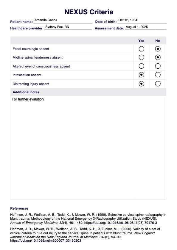 Criterios NEXUS | cribado de fracturas cervicales Template