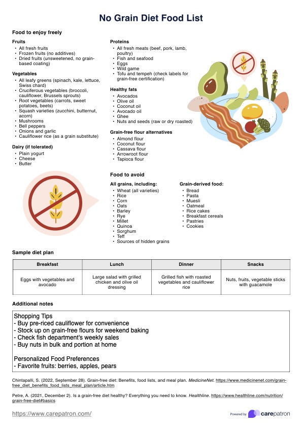 Lista de alimentos de dieta sin cereales Template
