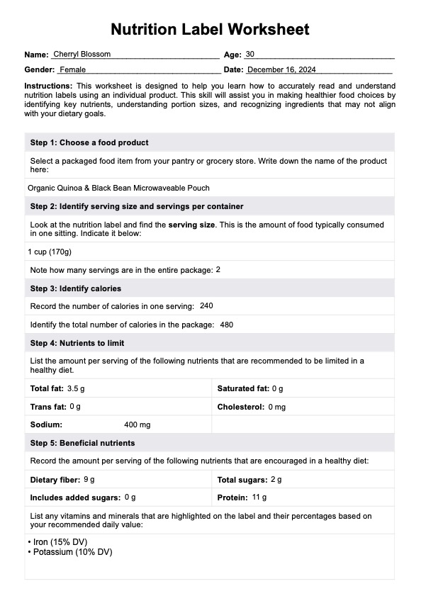 Descubra los secretos de las etiquetas nutricionales con nuestra Hoja de trabajo sobre etiquetas nutricionales, diseñada para que los profesionales de la salud guíen a sus clientes hacia una alimentación más sana.