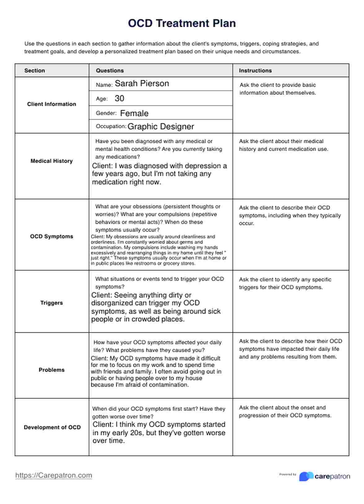 Plan de tratamiento de TOC (trastorno obsesivo compulsivo) Template
