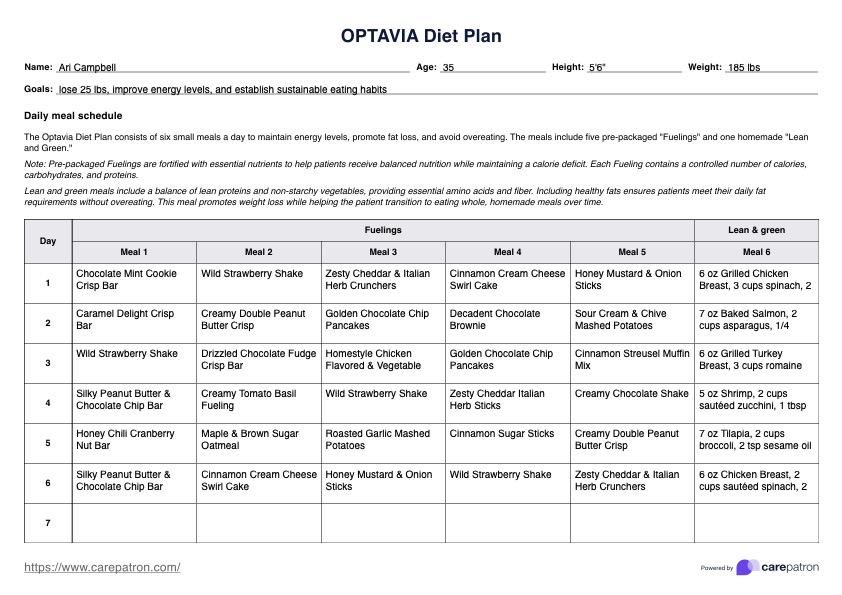 Explore la plantilla y el ejemplo de plan dietético de Optavia para una gestión eficaz del peso. Aprenda a crear su propio plan con una descarga gratuita en PDF.