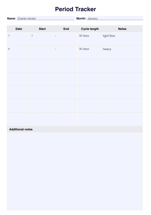 Por supuesto. El rastreador de periodos de Carepatron es fácil de modificar. Puede añadir el logotipo de su consultorio, detalles y secciones adicionales al rastreador para adaptarlo a sus necesidades.