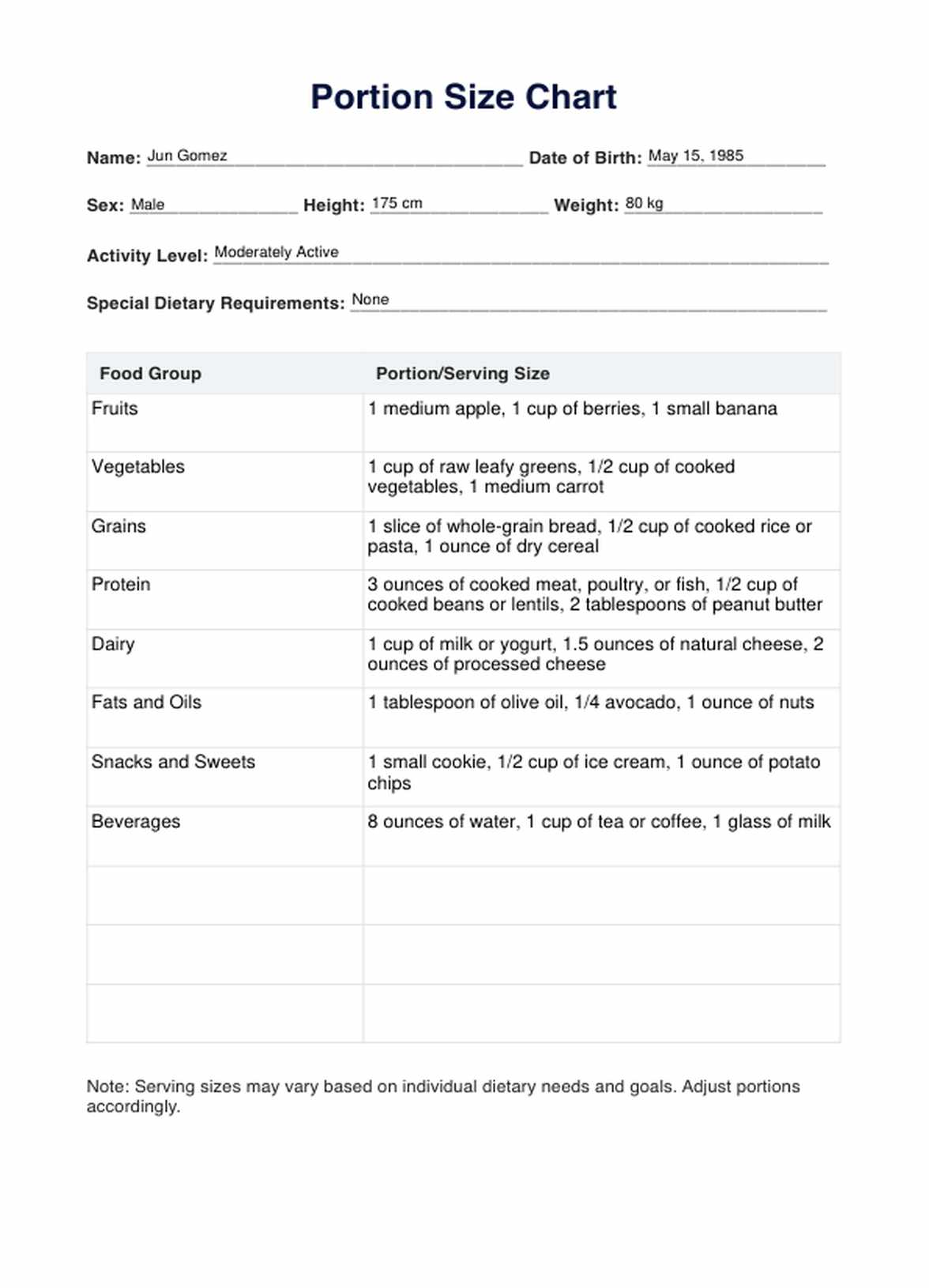 Gestione eficazmente la ingesta de alimentos con nuestra Tabla de tallas de raciones. Encuentre el tamaño adecuado de las raciones, minimice el desperdicio y alcance fácilmente sus objetivos nutricionales.