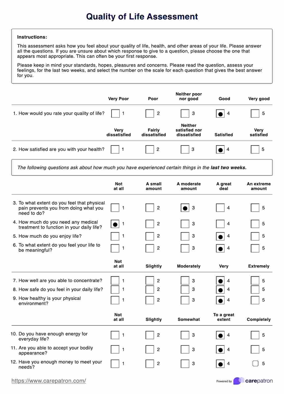 Formulario de evaluación de la calidad de vida Template