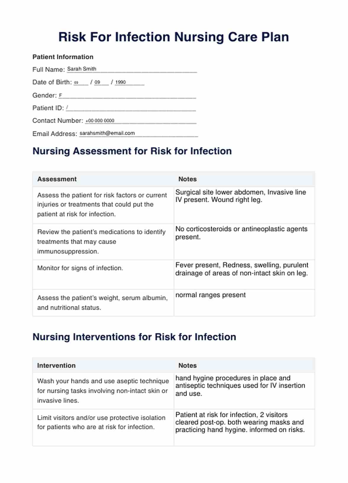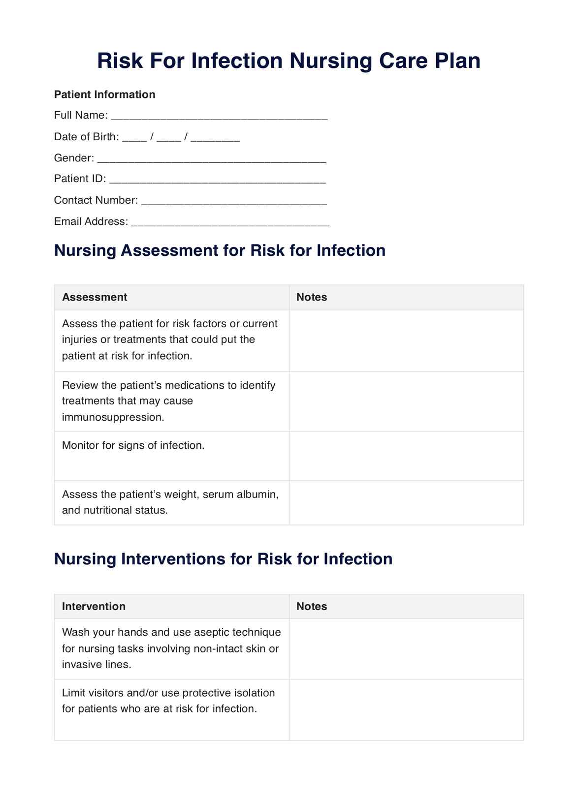 Las plantillas de planes de cuidados de enfermería para el riesgo de infección se utilizan para planificar una prestación de cuidados eficaz y segura. Están diseñadas para personalizarse y satisfacer las necesidades de cada paciente.
