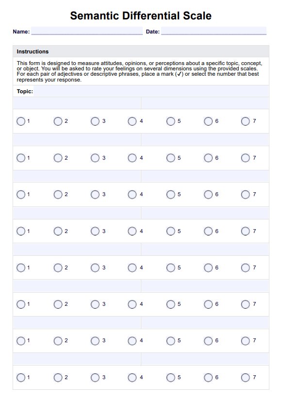 La escala diferencial semántica es versátil y puede utilizarse con diversos grupos de edad, incluidos niños, adolescentes y adultos. Sin embargo, es esencial tener en cuenta el lenguaje y las opciones de respuesta adecuadas a la edad de las distintas poblaciones.