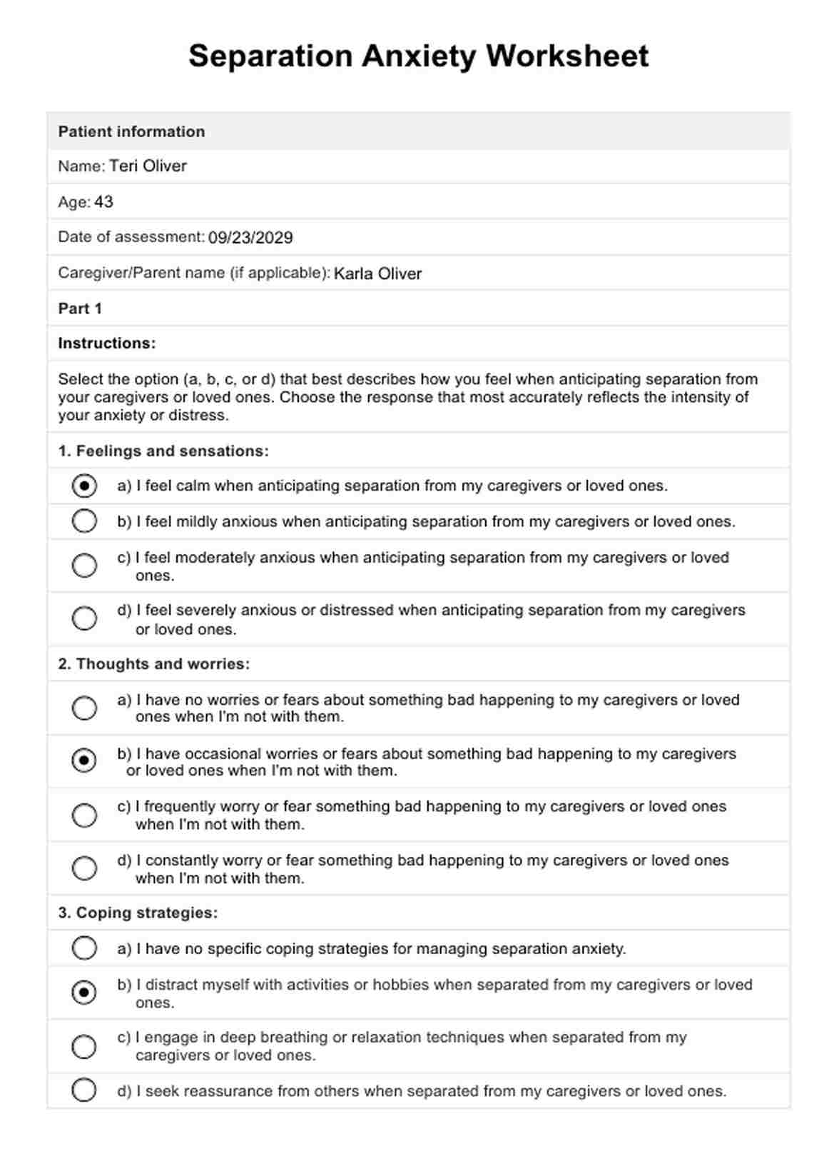 La hoja de ejercicios para la ansiedad por separación está pensada principalmente para que la rellenen padres, profesores, cuidadores o profesionales de la salud mental que trabajen con niños o adultos que experimenten ansiedad por separación.