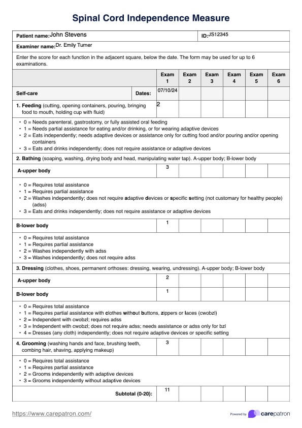 Descubra cómo utilizar el Spinal Cord Independence Measure (SCIM). Infórmese sobre la puntuación, las ventajas y cómo Carepatron puede ayudarle en su consultorio.