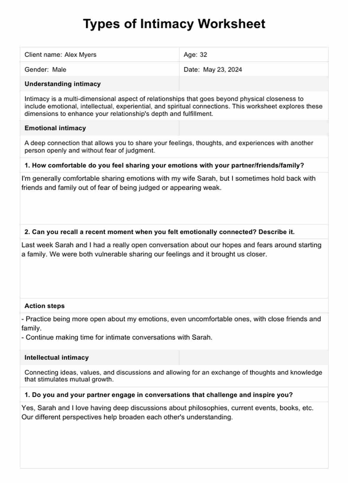 La hoja de trabajo puede beneficiar a cualquier etapa de la relación, tanto si los clientes son recién casados, parejas en un compromiso a largo plazo o que buscan construir conexiones más fuertes. También puede ser útil para las personas que estén considerando casarse o cohabitar.