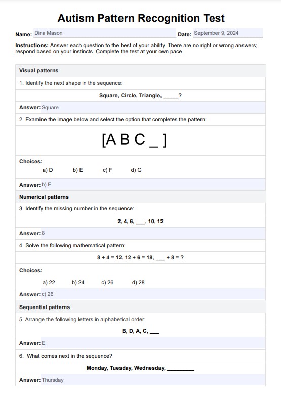 Tutustu autismin kuvion tunnistustestiin ymmärtääksesi kuvion tunnistamista autismissa. Käytä ilmaista PDF-tiedostoa kliinistä käytäntöäsi varten.