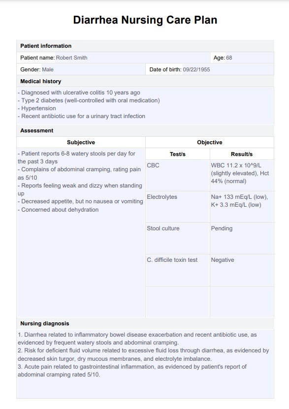 Jos haluat luoda kattavan hoitosuunnitelman ripulia varten, luo vain räätälöity suunnitelma Carepatronin tarjoamista telineistä ja vastaa potilaan tarpeisiin arvioinnin, toimenpiteen ja arvioinnin keskeisten näkökohtien avulla.