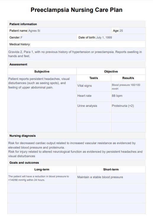 Optimoi äitien ja sikiön terveys Preeklampsian hoitosuunnitelmamallilla tehokasta hallintaa ja hoitoa varten.