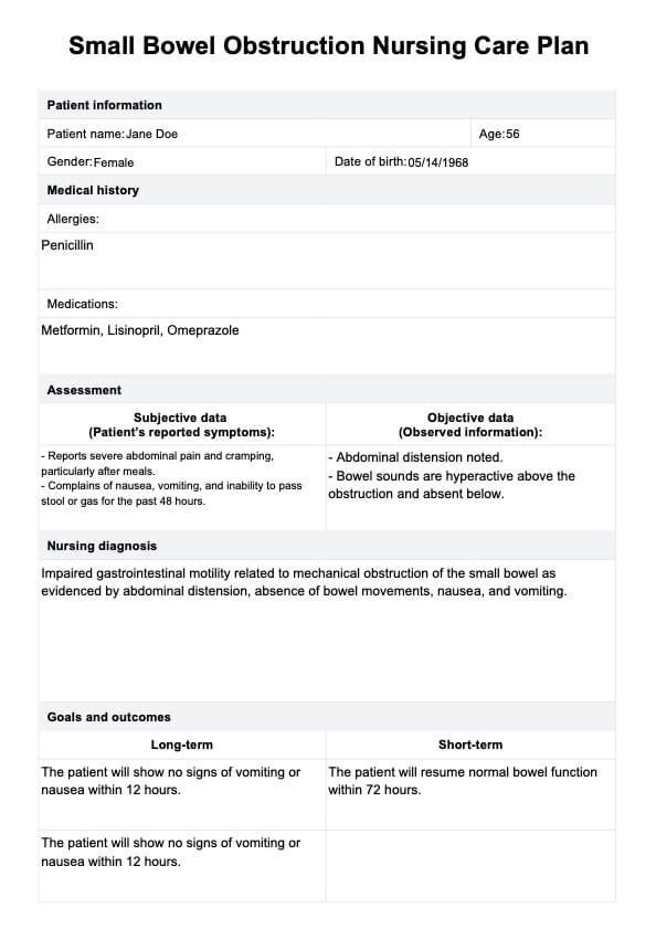 Ohutsuolen tukkeutumisen hoitosuunnitelma Template
