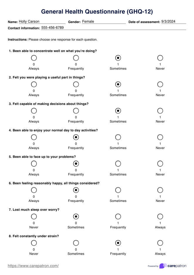 Questionnaire de santé général (GHQ-12) Template