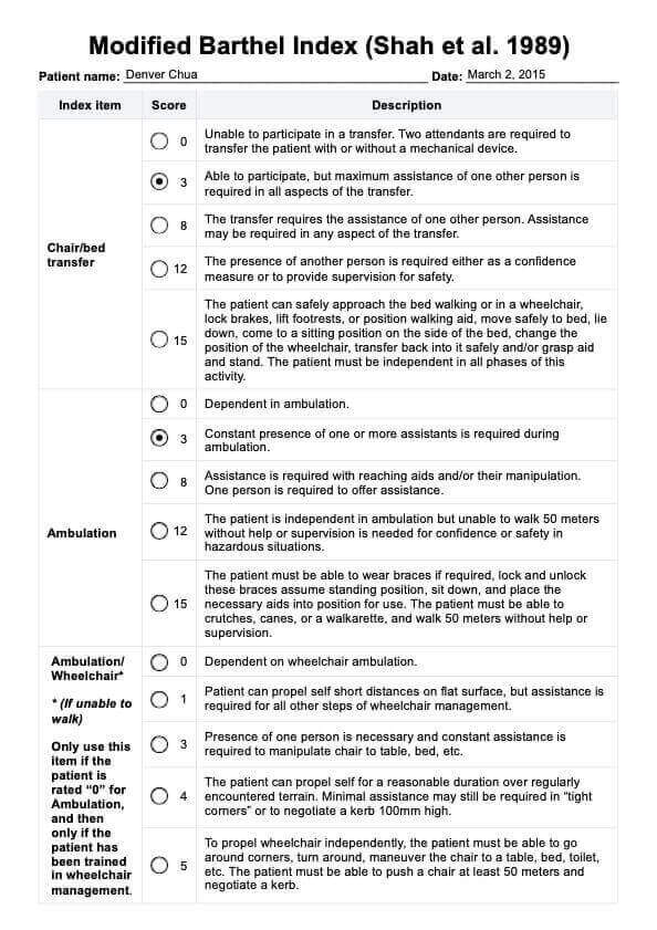 Terokai Indeks Barthel yang Diubahsuai oleh Shah dan rakan-rakan. Ukur kebebasan fungsi pesakit anda dengan templat PDF percuma kami.