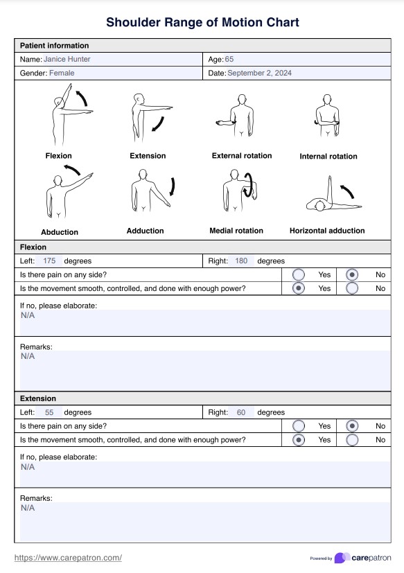 Använd vår kostnadsfria diagrammall för att bedöma patientens axelrörelseområde för att upptäcka eventuella underliggande skador.