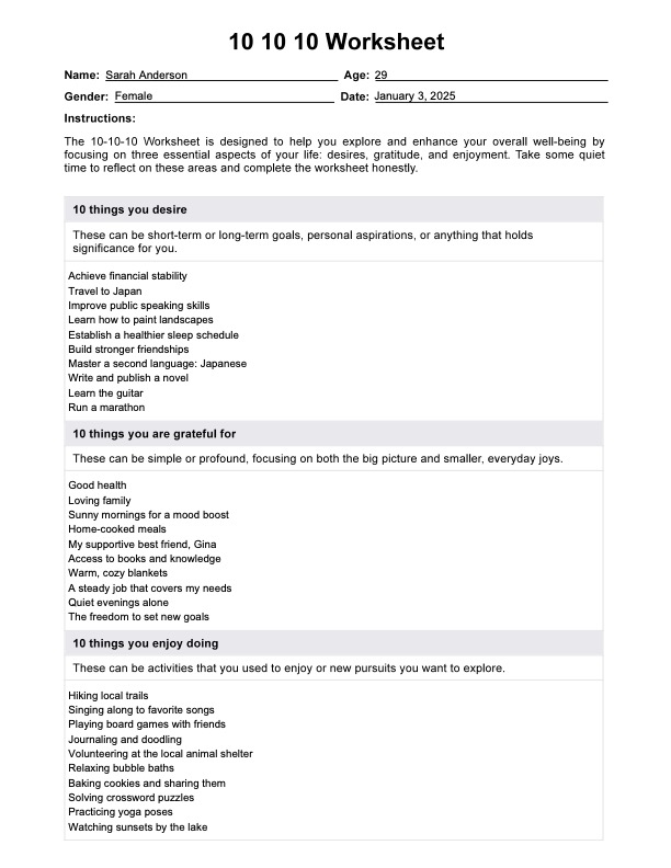 Help clients transform their life with the 10 10 10 Worksheet. Empower them to manifest their dreams to create a fulfilling life. Try it today!