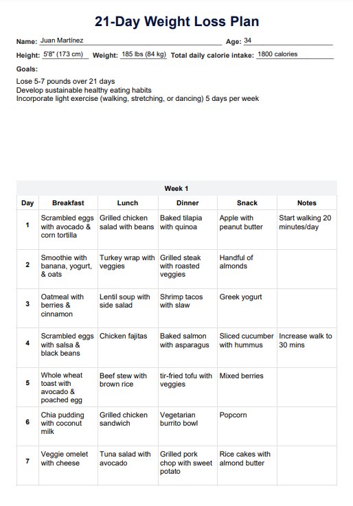 21-Day Weight Loss Plan Template