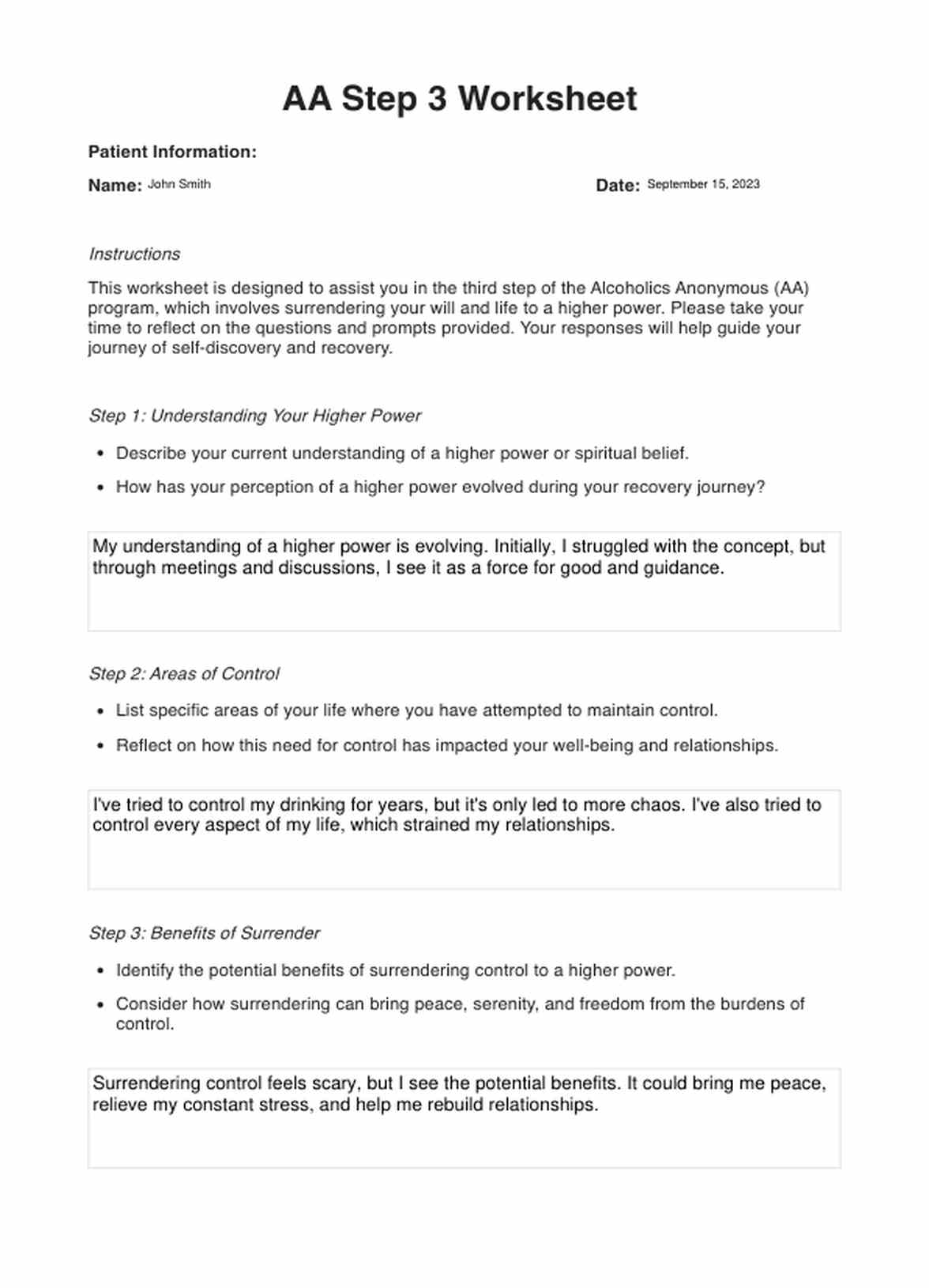 Individuals in addiction recovery, specifically those following the 12-step program in Alcoholics Anonymous, use AA Step 3 Worksheets.
